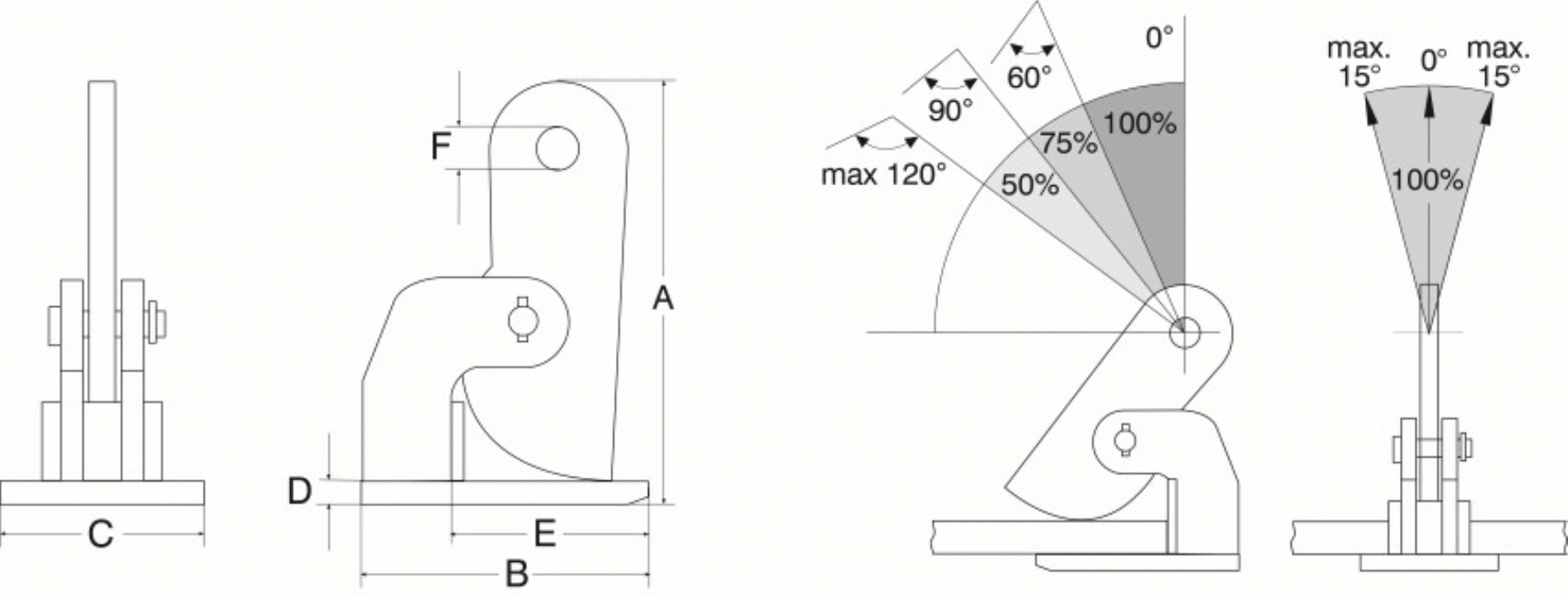 Voor het hijsen van stalen platen tot hardheid 37 RC (345 HB).Voor het veilig transporteren van staalplaten in horizontale positie.
