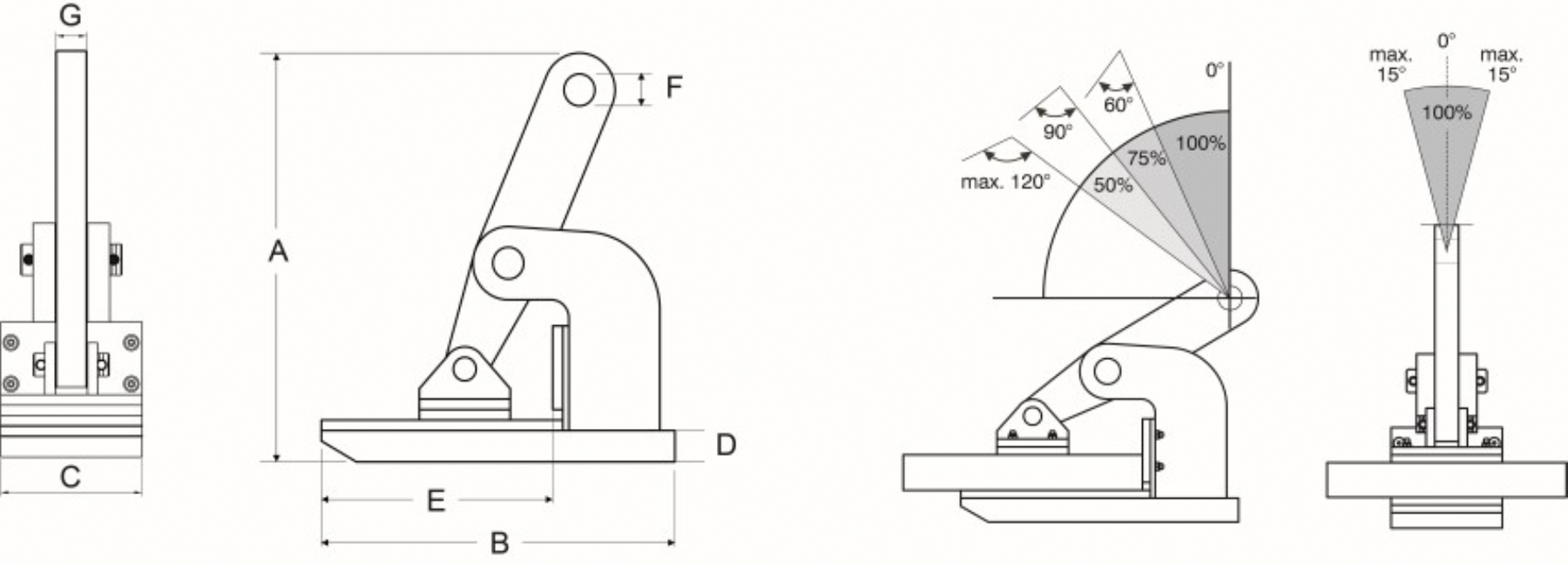 | Artikel nr. | Type | Veilige werklast (Kg) | Bek-opening (mm) | A (mm) | B (mm) | C (mm) |
