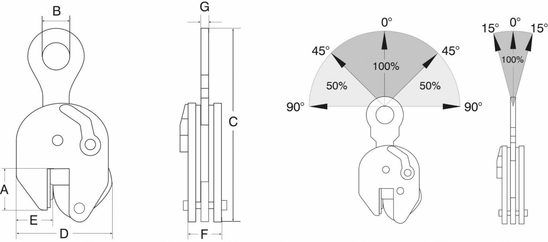 - Uitgerust met standaard hijsoog, beweegbaar in één richting.