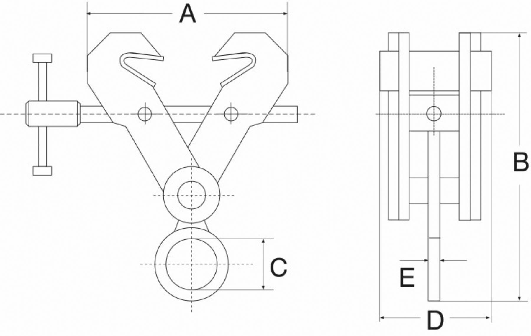 Artikel nr.TypeVeilige Werklast (Kg)Bek-opening (mm)A (mm)B (mm)
