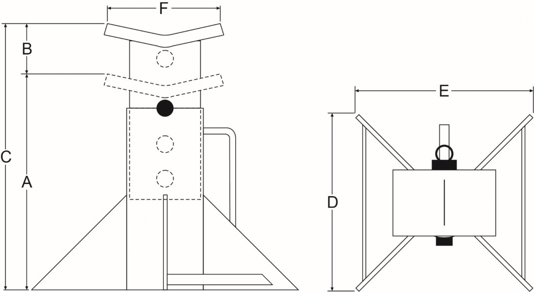 | Artikel nr. | Type | Veilige werklast (Kg) | A (mm) | B (mm) | C (mm) | D (mm) | E (mm) | F (mm) | Gewicht (Kg) |