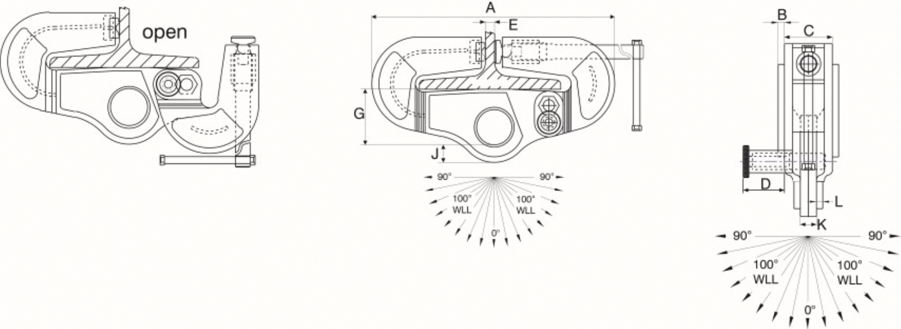 Uitgerust met een speciale borging om verschuiven op de balk tegen te gaan. Met vast ophangoog die belasting in elke richting mogelijk maakt.